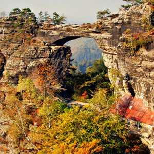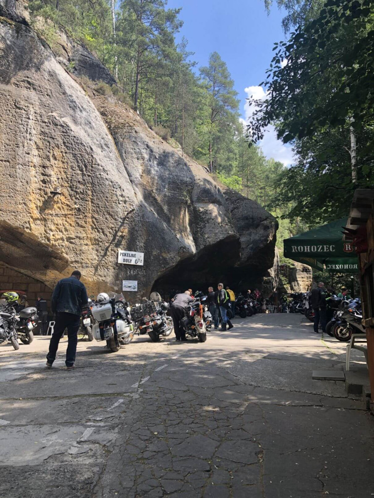 A stop at Adršpach-Teplice Rocks. Park the bike and take a short walk to see the massive sandstone towers rising vertically from the forest floor. It looks like a set from a fantasy movie.
