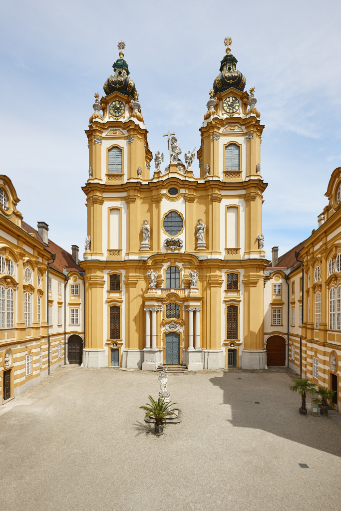 We stop at this colossal yellow Baroque palace sitting on a rock above the river. It is one of the most famous monastic sites in the world. The library inside is breathtaking.